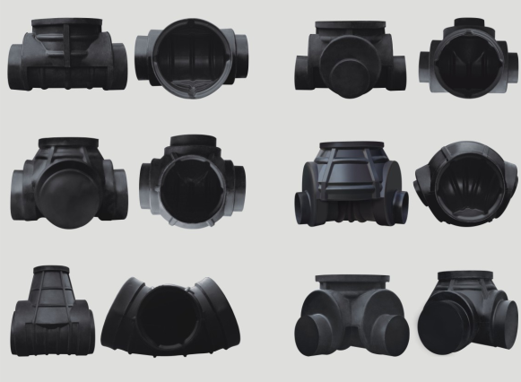 檢查井俗稱“窨井”,由井座、井筒、井蓋或防護蓋座和檢查井配件組成。一般設在排水管道交匯處、轉彎處、管徑或坡度改變出、跌水處以及直線管段上每隔一定距離處,是便于定期檢查、清潔和疏通管道的排水附屬構筑物。其中,關鍵的井座部分采用一次性注塑成型,以變徑接頭、可變角接頭及密封圈等配件來達到改變管徑及角度的連接。檢查井配套開發了注塑成型的井蓋、井筒 、井座,路面載荷通過井蓋、井座作用于檢查井周圍,避免了路面載荷對檢查井的破壞,蓋座具有上下浮動的功能,可主動適應路面的高低變化。