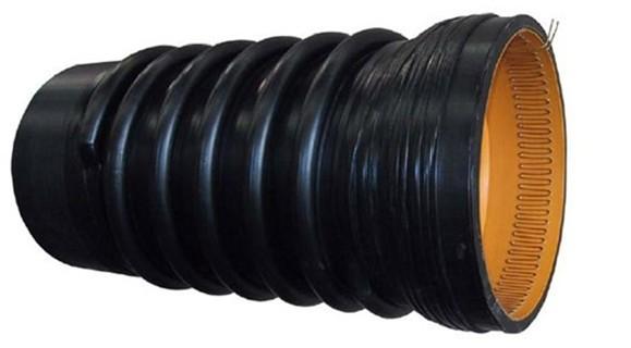 采用熱態(tài)纏繞成型工藝,以聚丙烯(PP)單壁波紋管為支撐結(jié)構(gòu)制成具有較高抗外壓能力的特殊結(jié)構(gòu)壁管材。